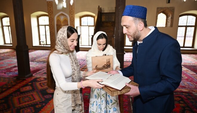 Leyla və Arzu Əliyevalar Xan məscidində -