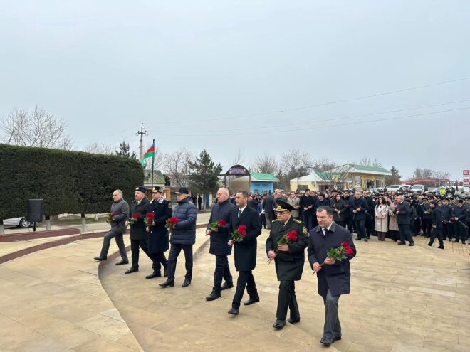 Mərasim iştirakçıları Beyləqan şəhərinin girişində yerləşən “Ana Harayı” abidəsini ziyarət edərək faciə qurbanlarının xatirəsini ehtiramla anıb, abidə önünə gül dəstələri düzüblər.